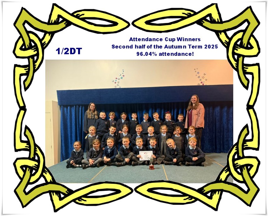 The class with the greatest overall average attendance for a term receive a cup in recognition of their achievement which they can keep in their classroom for the following term. The class is pictured in the newsletter and the electronic parental information noticeboard in the school entrance hall.