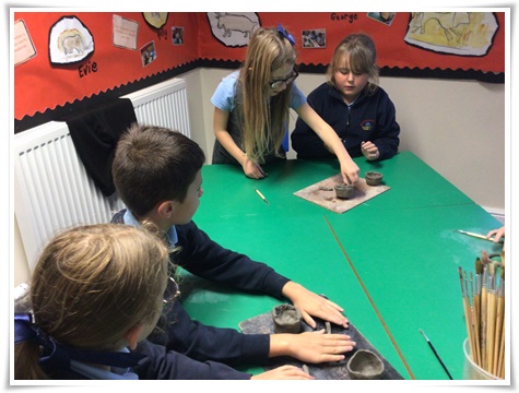 First we learned about the pottery made by the Beaker people during the Bronze Age. We looked closely at the shapes and patterns, then we sketched some in our sketchbooks. We used our art skills to create our own Beaker pots, which we then painted.