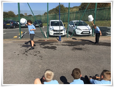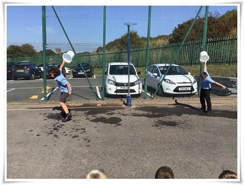 As part of our Forces topic, we went outside to witness the wonder of centripetal force. We discovered that if you spin a bucket containing water fast enough over your head, the water will stay in the bucket. If you slow down, the water falls out - as we discovered!
