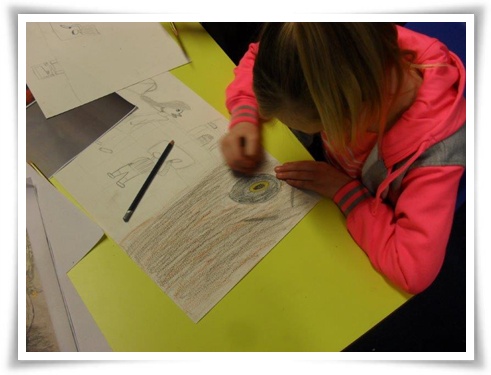 We loved the colours that Dave McKean used in the book and we tried to mix the same shades using water colour pencils.