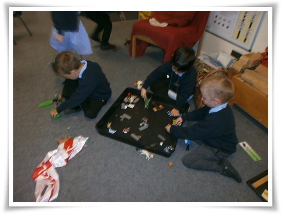 St. George and the Dragon This morning we learned all about the story of St. George and the dragon. We have enjoyed playing with knights and dragons and even decided to do our own parade in the classroom. We all independently made our very own St. George's Cross flags.