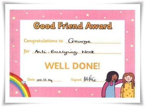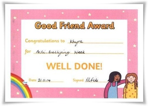 All the children received a good friend certificate for all the excellent work they did in Anti-Bullying Week