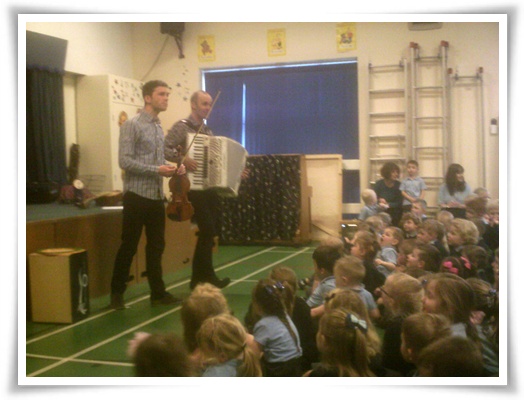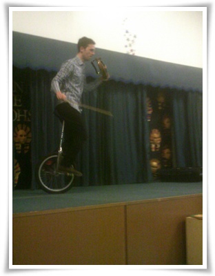 Today the musical duo Fidaddle visited school and amazed us with their music and unicycling.