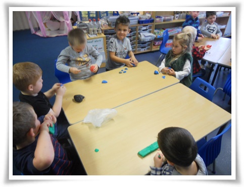 Physical Development - Finger Gym - Fine Motor Skills We have been having fun with the modelling clay. We pinched, pulled, kneaded, rolled, patted, poked and punched the clay to make it nice and soft. We then made models and mixed colours, all the while strengthening our finger muscles which will help us with our control, grip and stamina for writing.