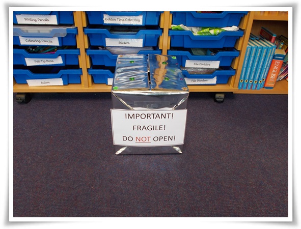 3LJ had a special delivery from Mr. Warbrick that the postman had brought, but we were really stuck with what to do because we weren't allowed to open the box as it had 'DO NOT OPEN!' written on it.
