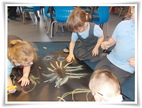 We have learnt and practiced the skill of smudging and blending using chalks and pastels (please see displays in the classroom). We even created new colours by mixing chalks together!