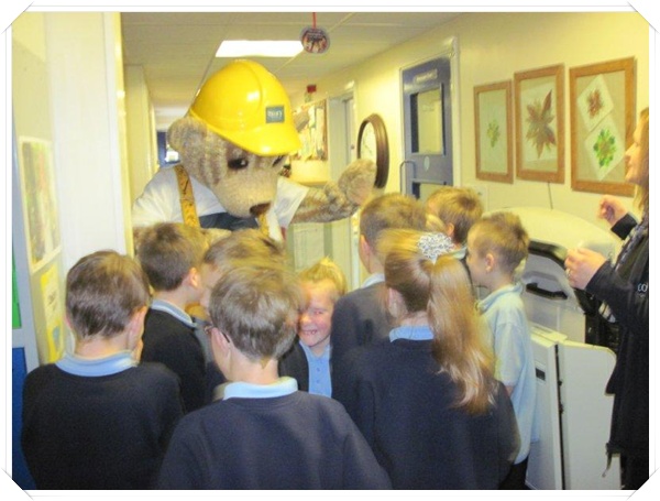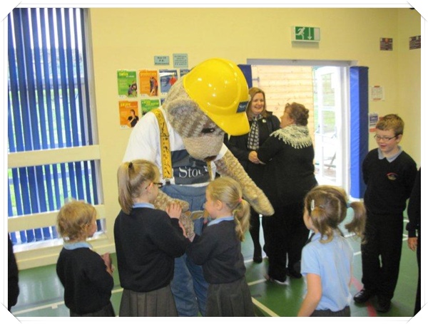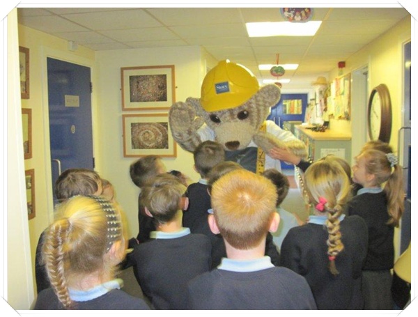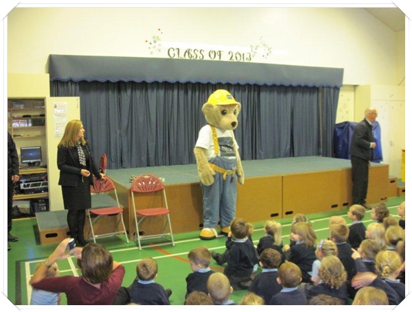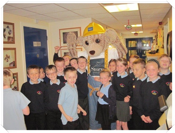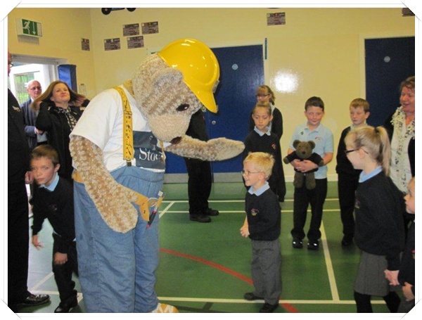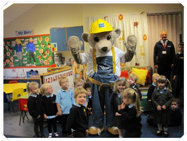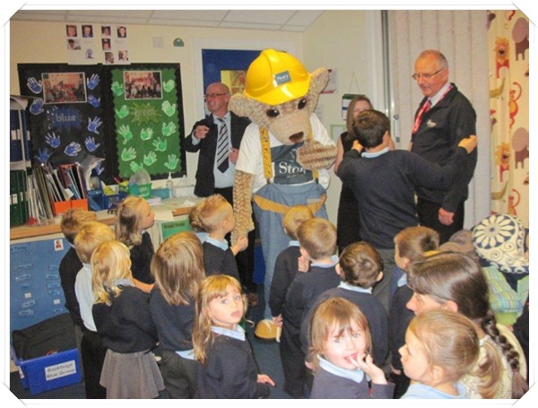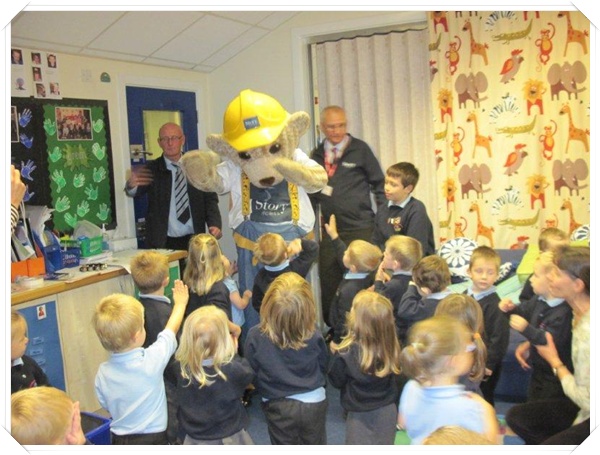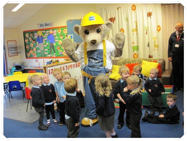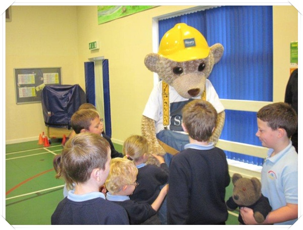 Builder Bear from Story homes visited to teach the children how to stay safe near building sites.