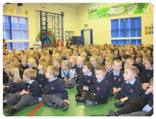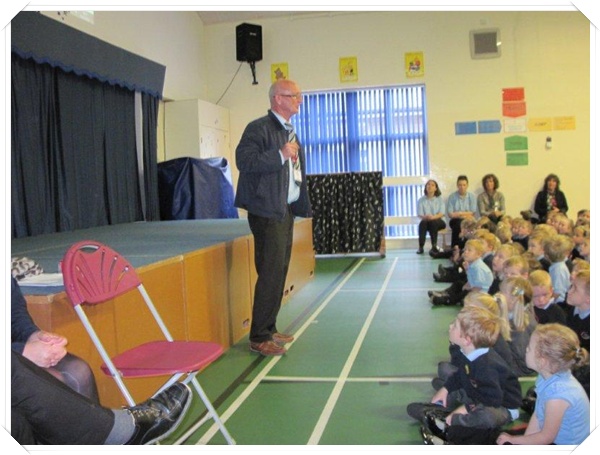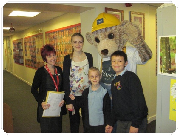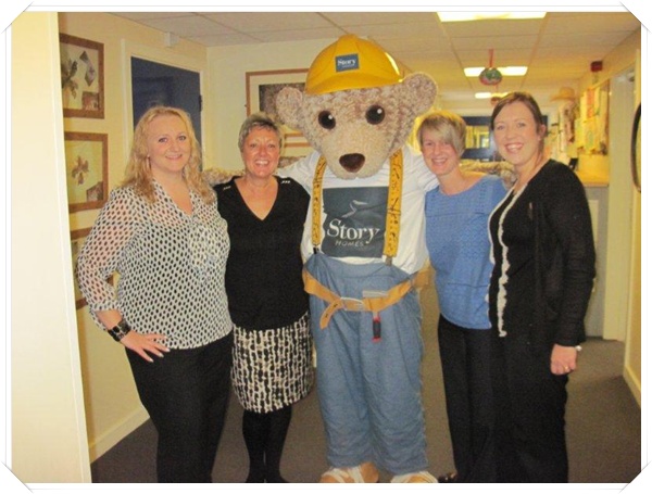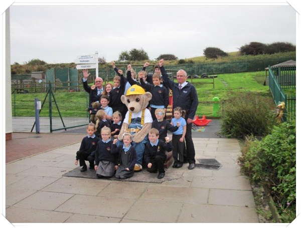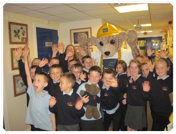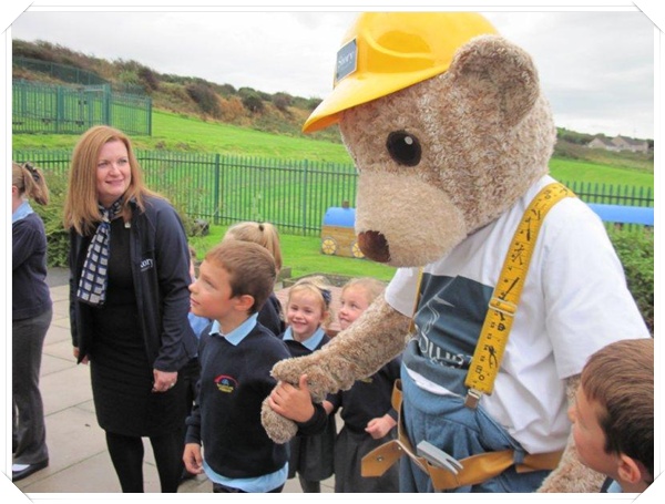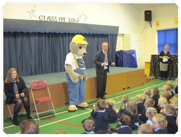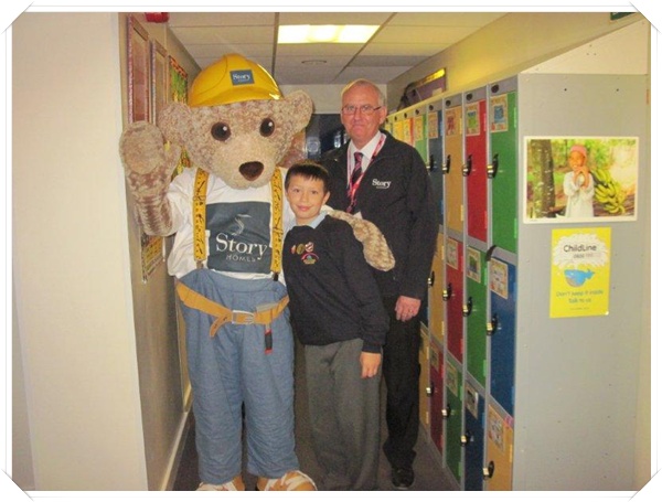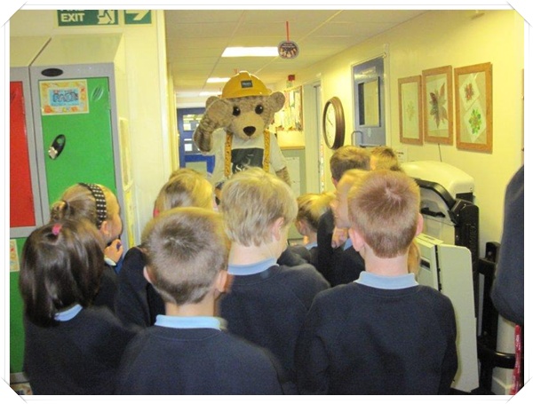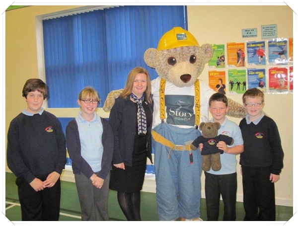 Builder Bear from Story homes visited to teach the children how to stay safe near building sites.