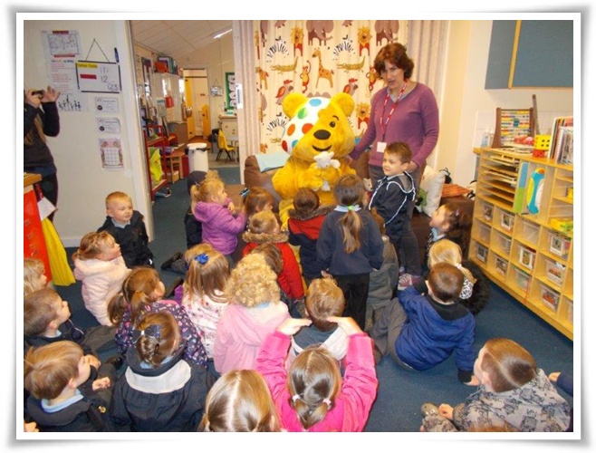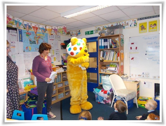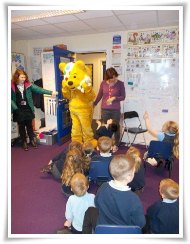 Pudsey came to visit today to thanks us for all we do for Children in Need.