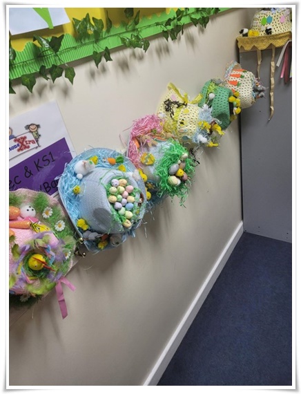 Decorated Easter Eggs and Bonnets
